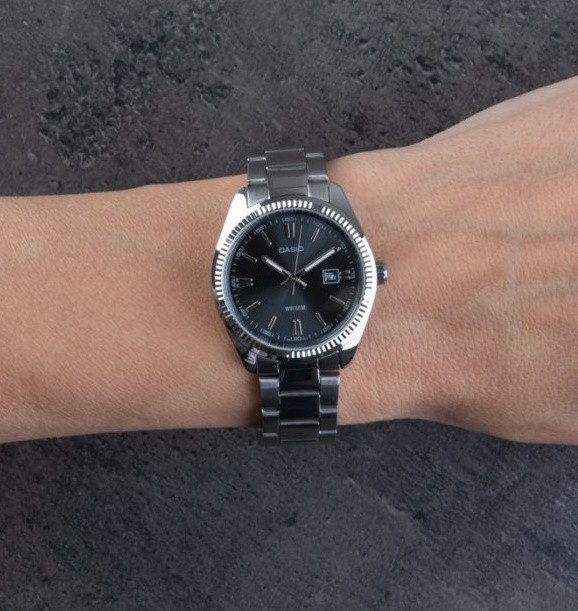 Casio férfi karóra tok anyaga fémötvözet, színe ezüst, a szíj anyaga nemesacél és a színe ezüst. Az óratok átmérője 39mm,