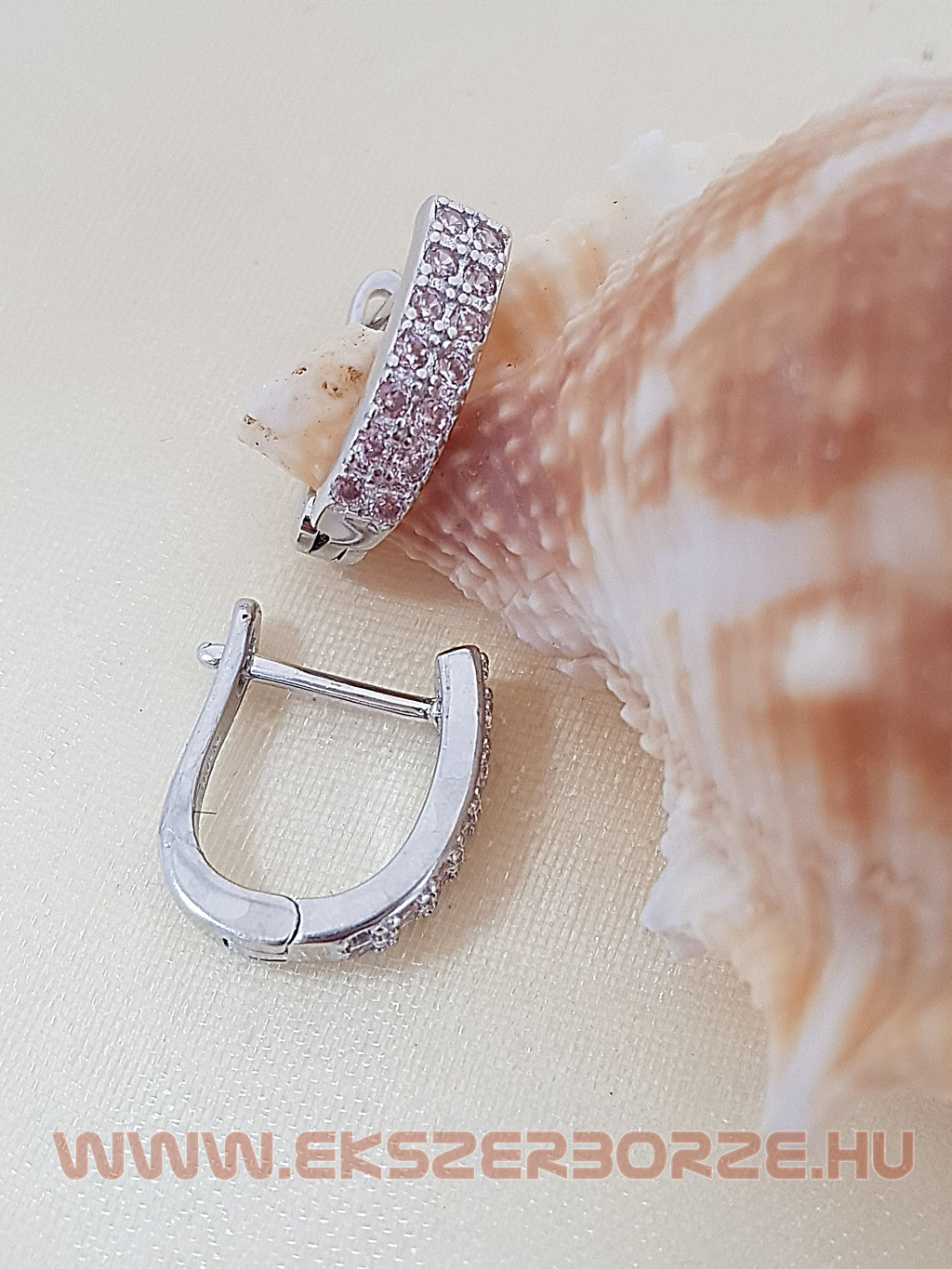 Ezüst fülbevaló rózsaszín kövekkel