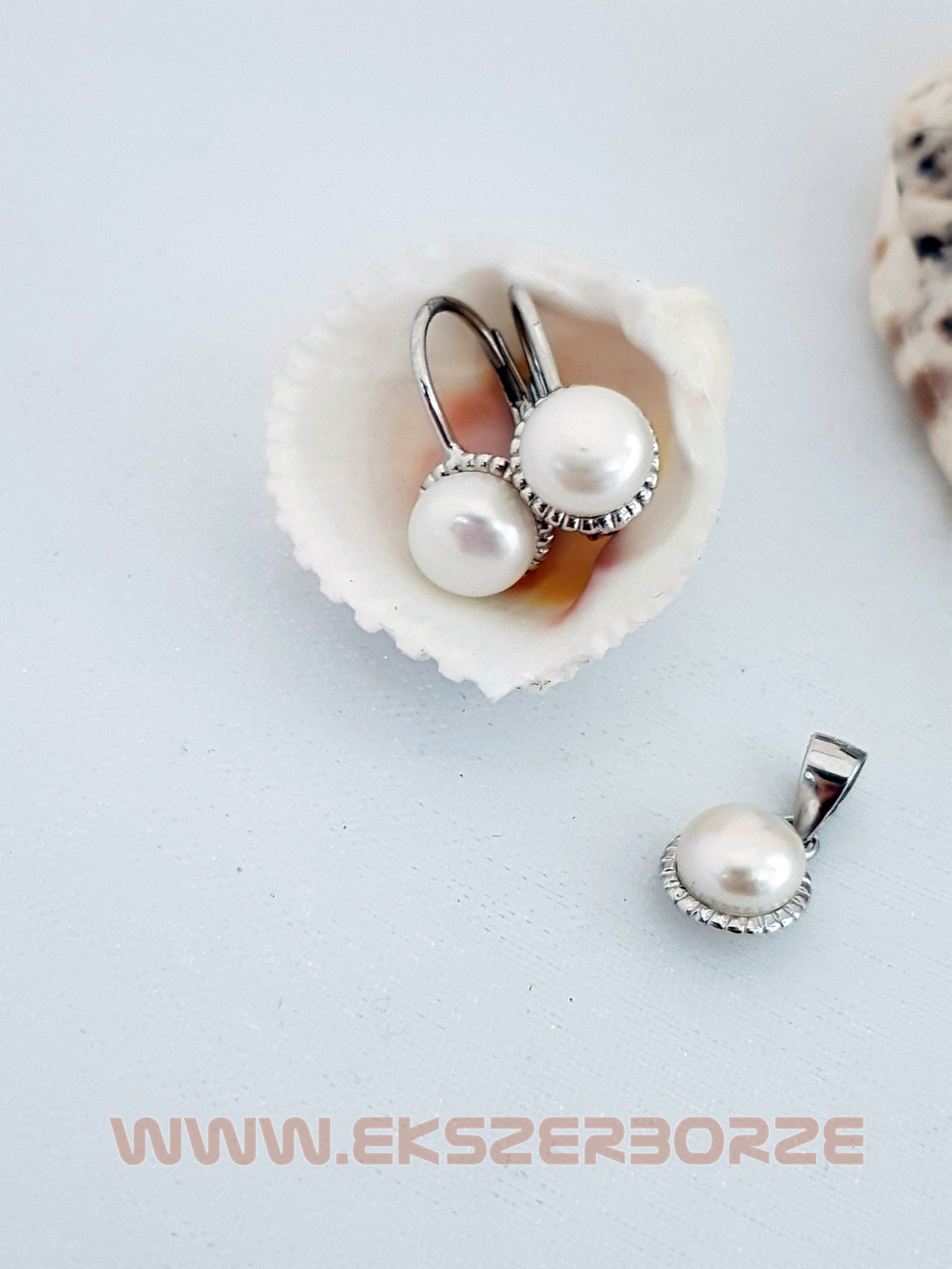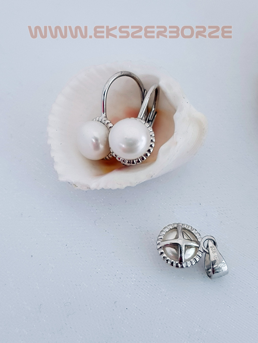 Fülbevalón és a medálon a gyöngy átmérője: kb 6,5-7 mm